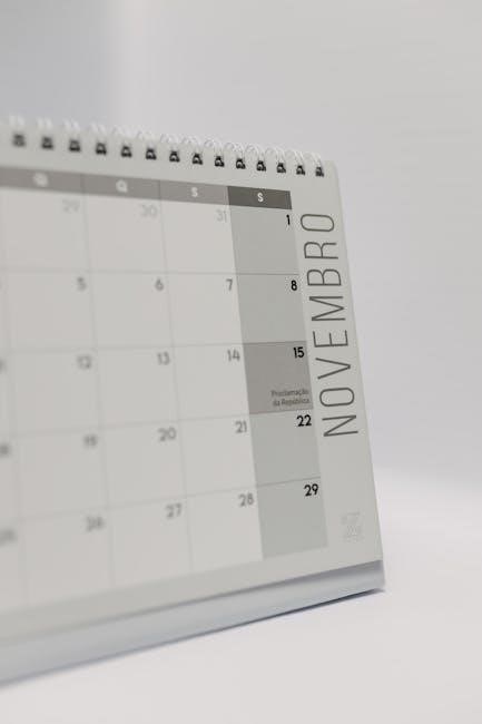 Specifically‚ the calendar details dates for student and staff holidays‚ as well as important deadlines for various academic activities․ Accessing the full PDF version of the calendar provides a comprehensive overview of all these critical dates‚ ensuring everyone remains well-informed and prepared throughout the academic journey․